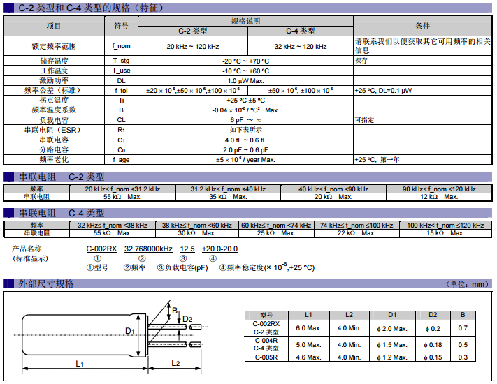 C-002RX規(guī)格,C-002RX無源晶振,C-002RX
